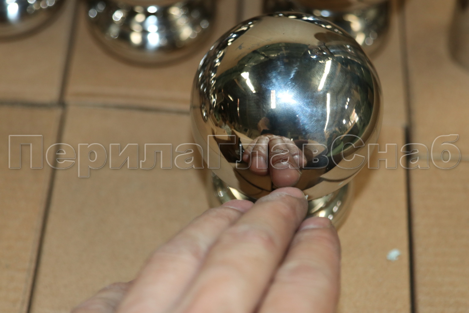 Наконечник шар на стойку Ø38.1 мм, штампованный, полированный, 400 Grit, AISI 201 k070-2