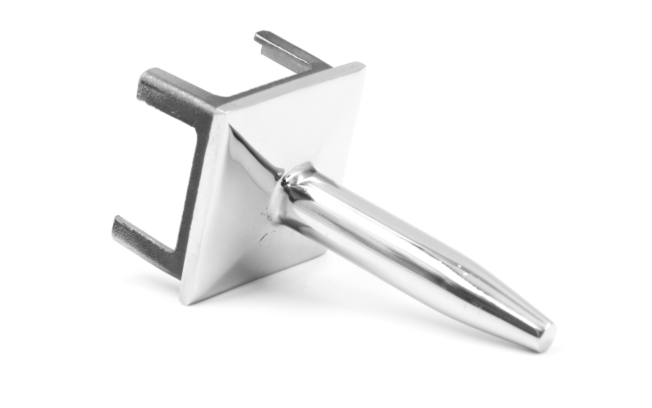 Наконечник палец (солдатик) на стойку из профильной трубы 40х40х1.5 мм, литой, усеченный, облегченный, полированный, нержавеющий AISI 304 k285-2