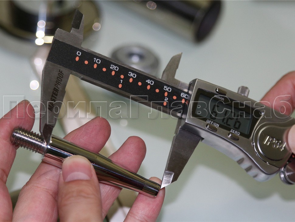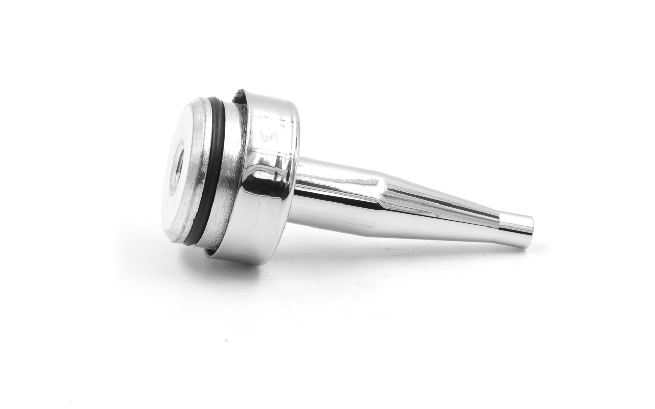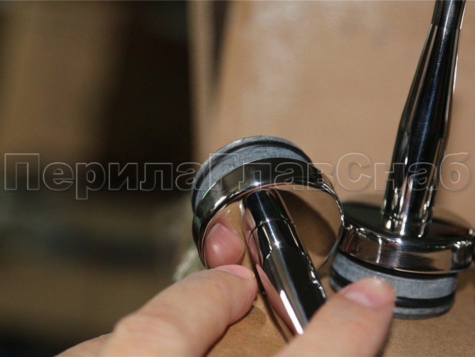Наконечник палец (солдатик) с системой фиксации из алюминия в стойке диаметром Ø38.1 мм. Деталь полированная, нержавеющая, литая. Марка стали детали - AISI 304.