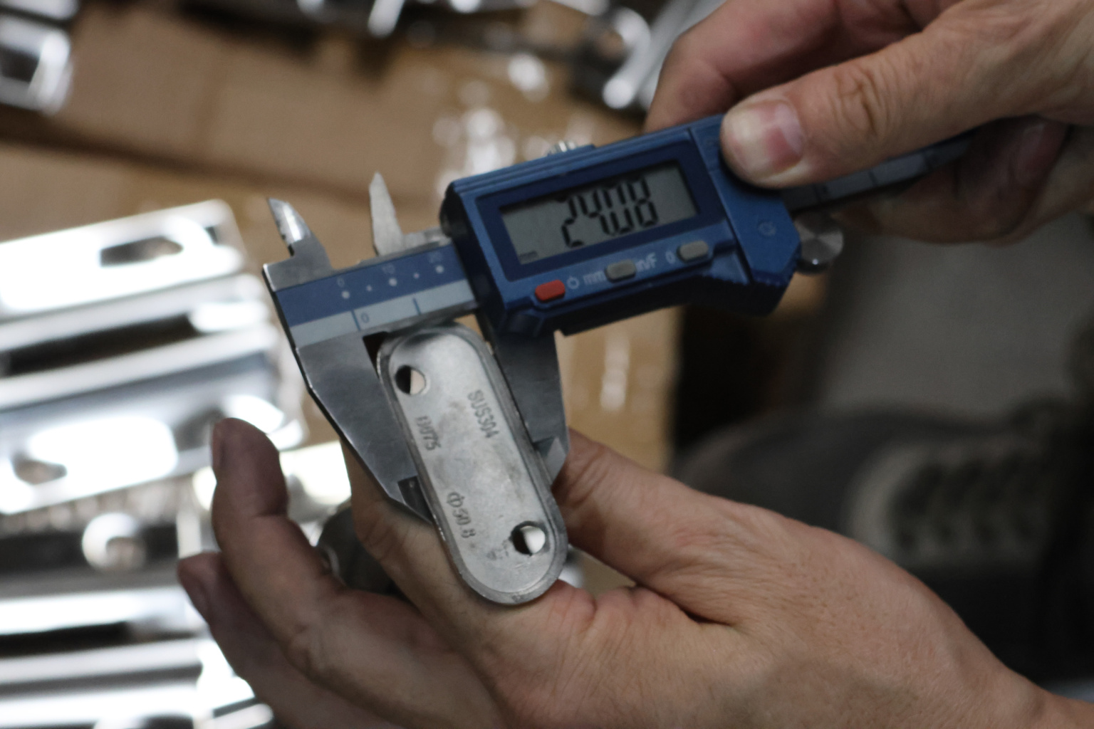 Наконечник палец на стойку из профильной трубы 40х40 мм, с регулируемым ложементом под поручень Ø50.8 мм, полированный, литой, облегченный нержавеющий AISI 304 k239-3 купить в Челябинске
