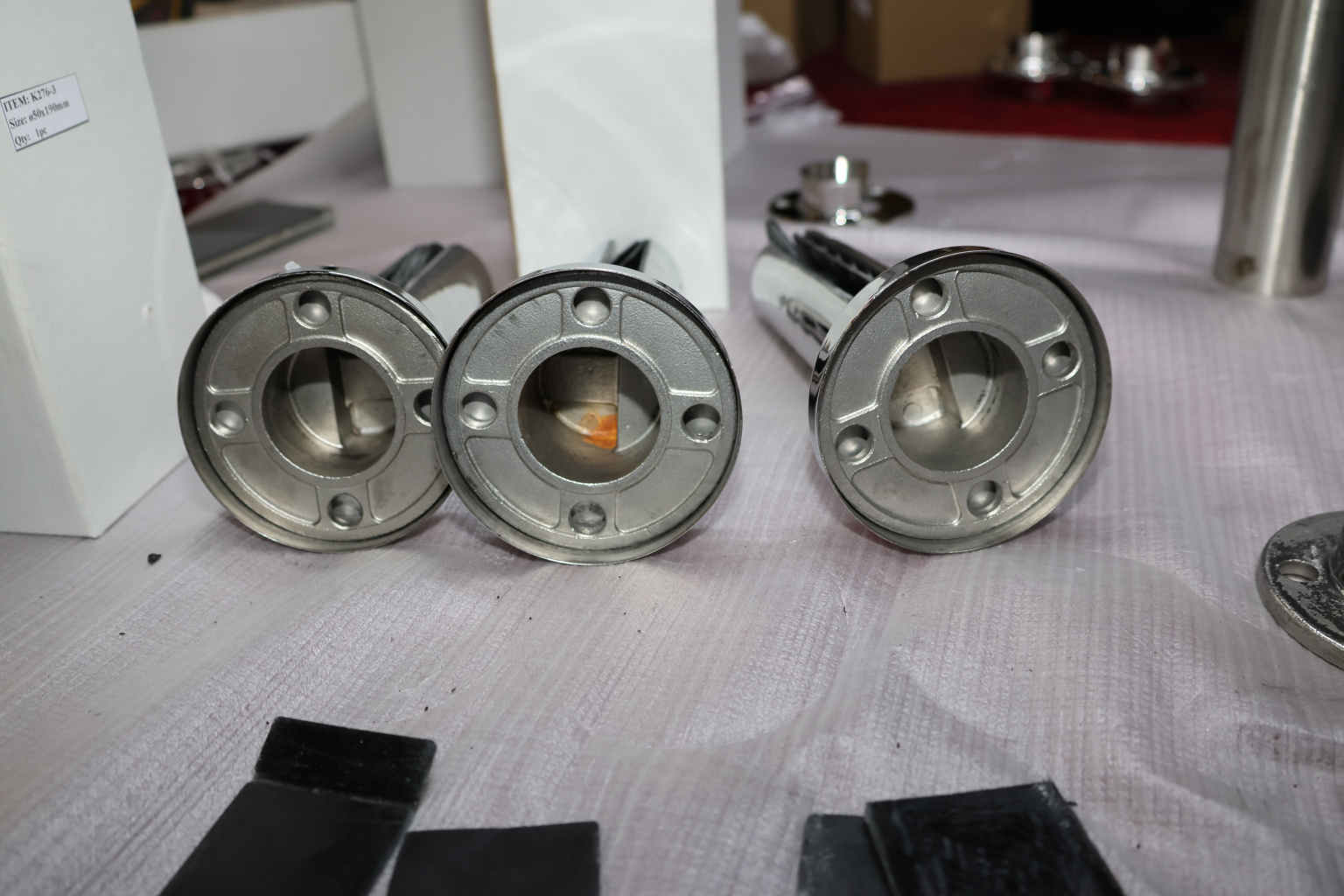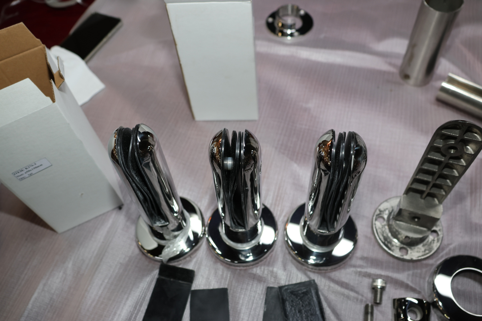 Стеклодержатель литой напольный, круглый Ø50х190 мм, полированный. Марка стали - AISI 304. В комплекте идут 4 уплотнителя: 2 пластиковых и два резиновых. Вам понадобиться для крепежа потайной винт под шестигранник k601-19-120