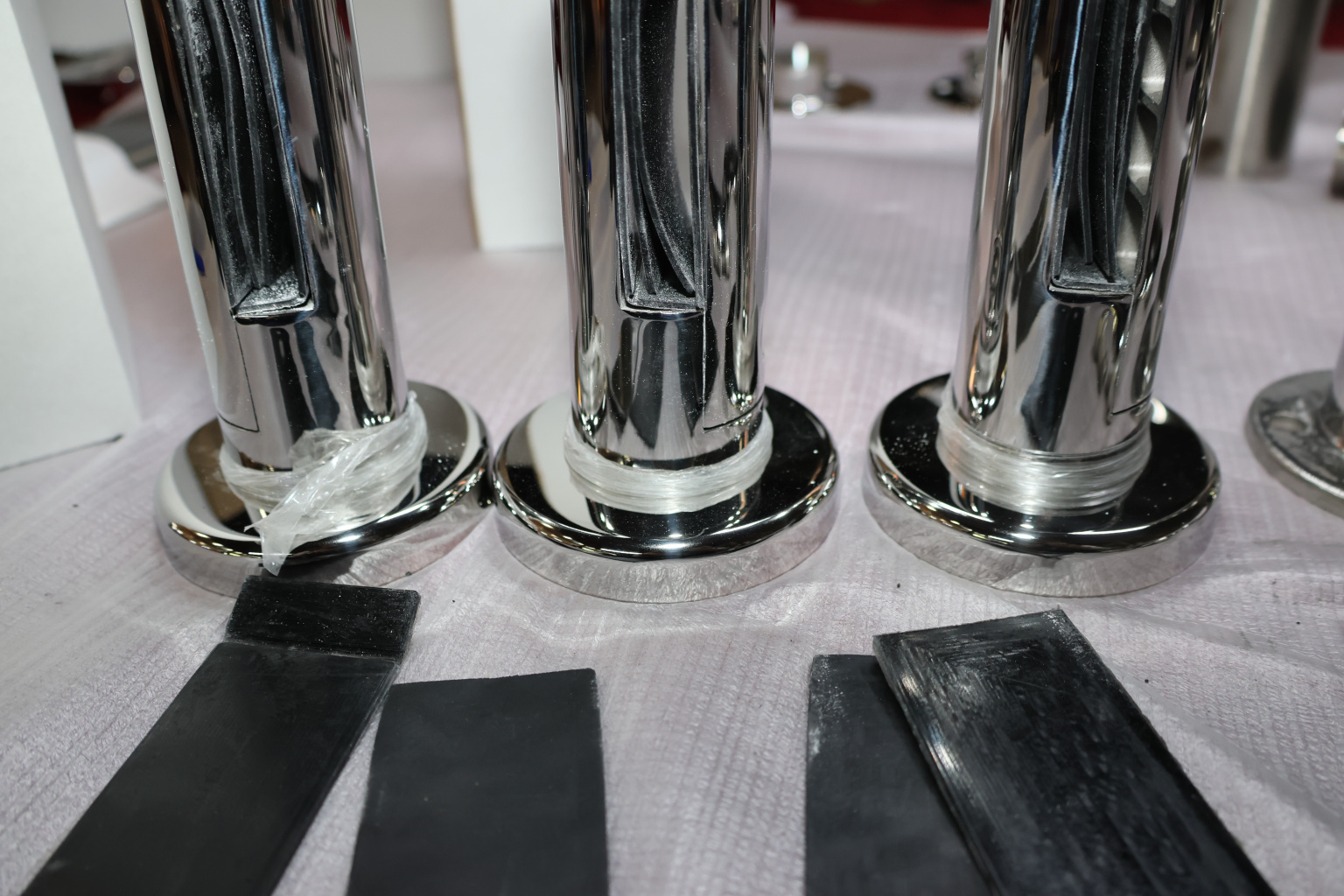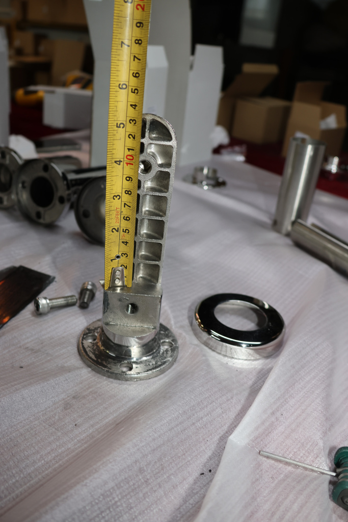 Для крепления требуется отверстие в стекле. Стойка идеально подходит для стекла 12 мм (6+6) с 2 уплотнителями. В зависимости от того, какое стекло нужно зажать, варьируется количество уплотнителей, каждый из которых имеет толщину 0.4 мм. Для стекла 10 мм (5+5) рекомендуется использовать дополнительные уплотнители из комплекта. Для закрепления стекла в стойке винт необходимо укоротить и установить вместо стандартного нижнего винта. При таких манипуляциях возможно появление щели в нижней части стеклодержателя, но на его несущую функцию это никак не повлияет.