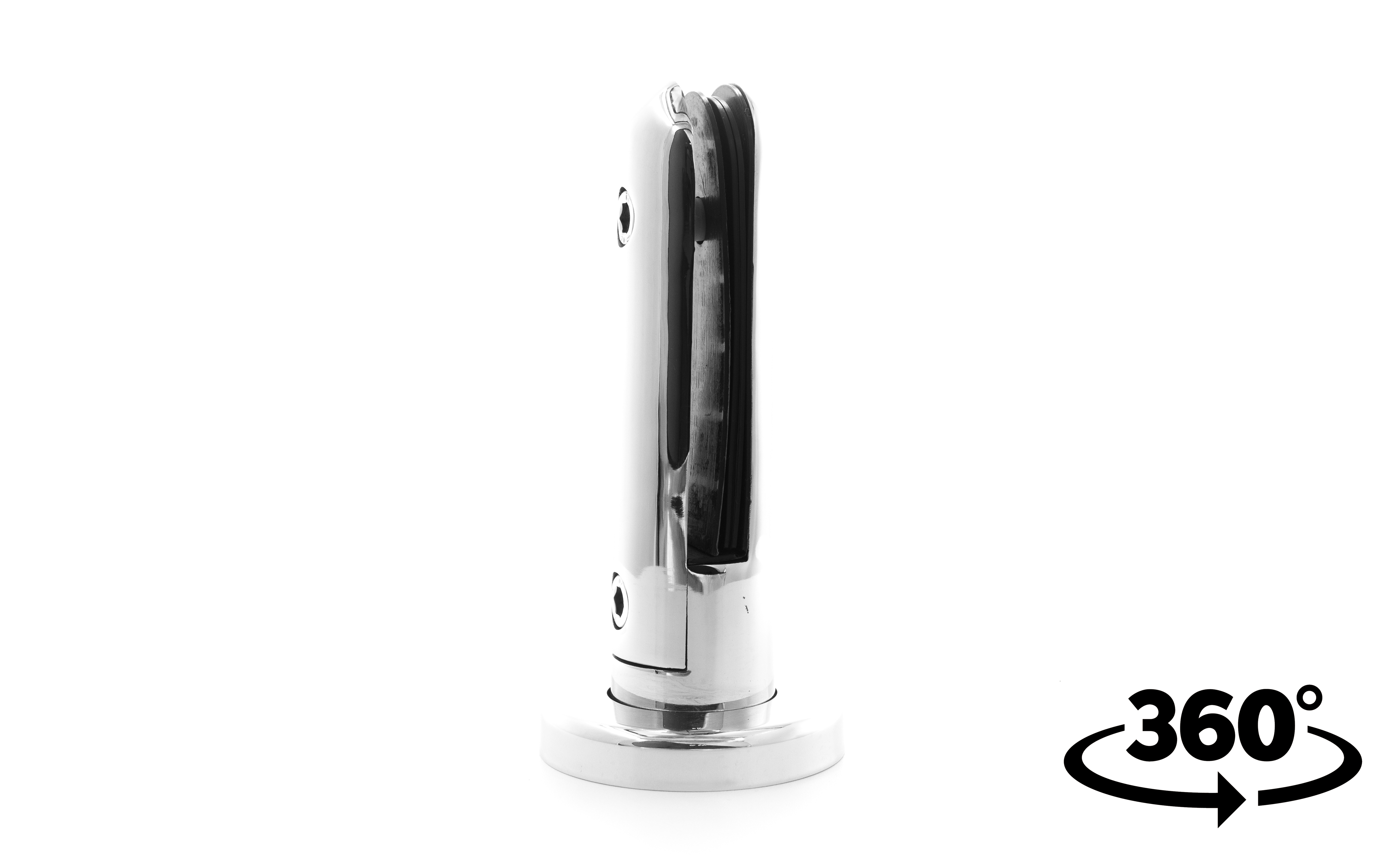 Стеклодержатель Ø50х10х18, шпилька М16х205 мм, для стекла 8-40 мм, AISI (201), с возможностью регулировки выноса до 65 мм, для торцевого крепления стекла, полированный, литой k277-3