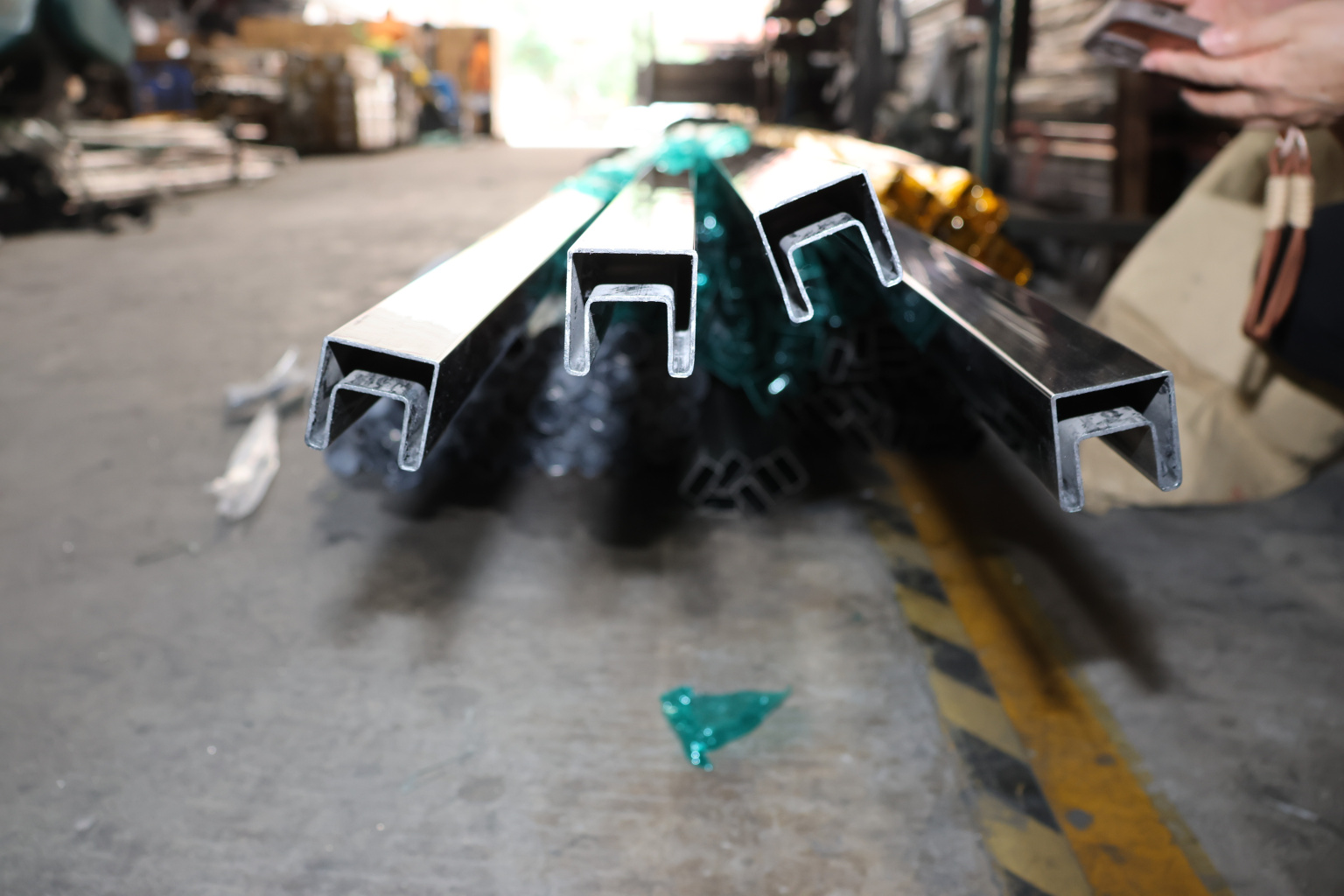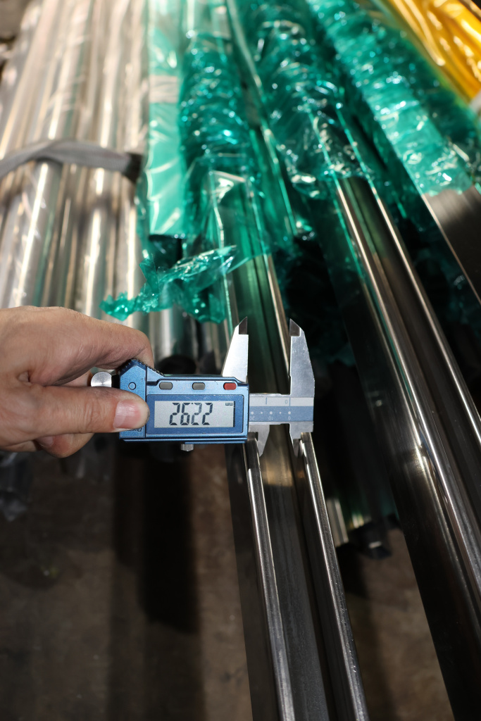 Труба 40х40 мм с пазом 24х24 мм под стекло, полировка, AISI 304 #600