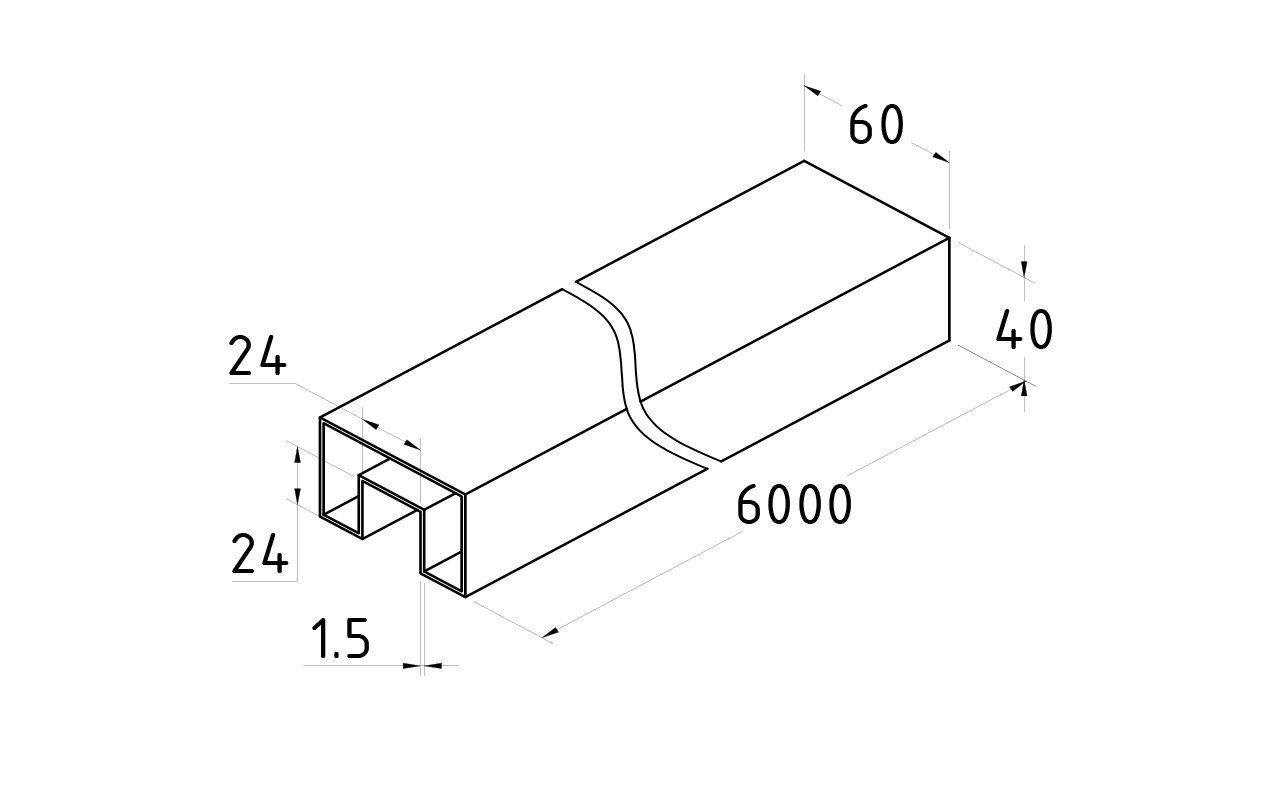 труба 40х60 с пазом 24х24 мм под стекло, полированная в картонном тубусе, 6000 мм