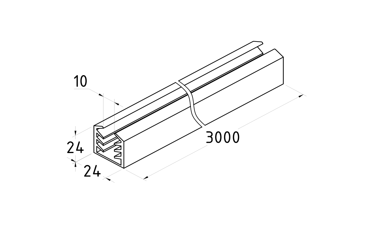 Фk312 уплотнитель в поручень с пазом 24х24 для стекла 10 мм, EPDM