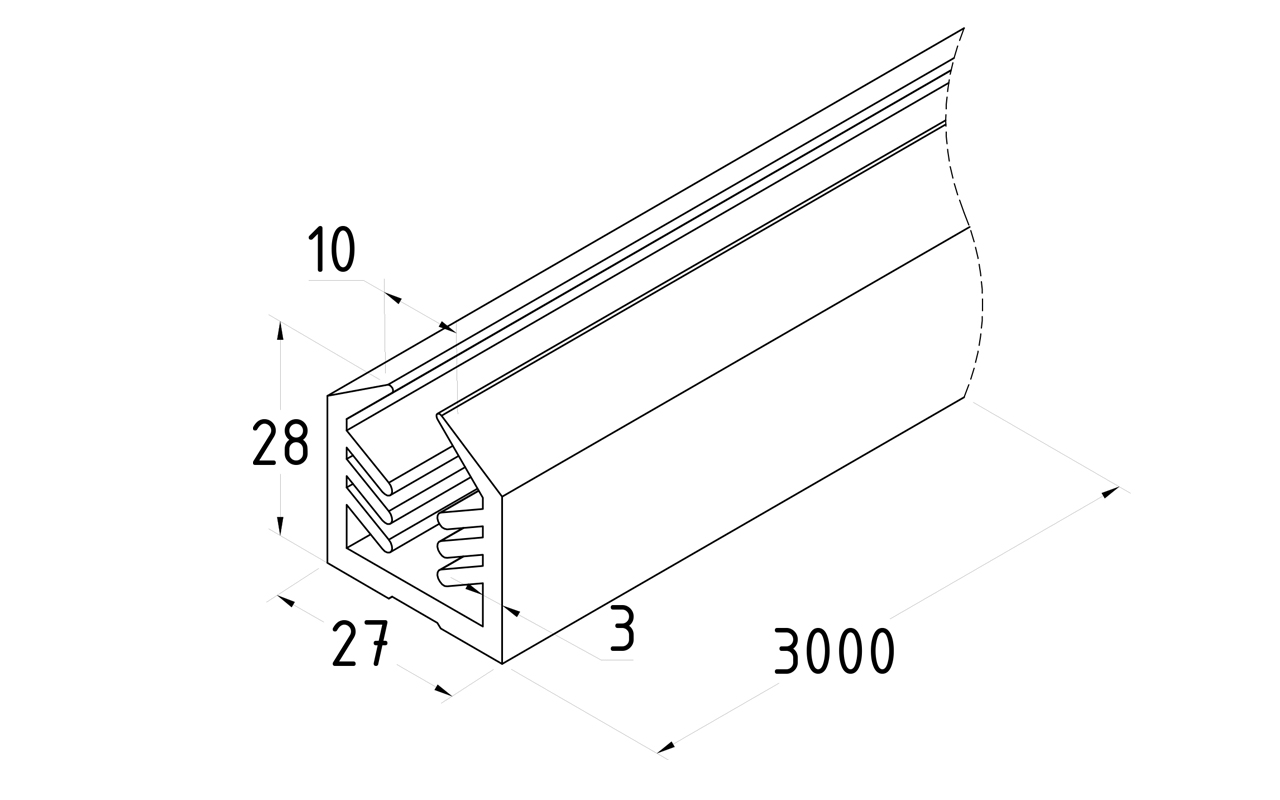 Уплотнитель в поручень с пазом 27х30 для стекла 10 мм, EPDM (палки 3 м) СЕРЫЙ