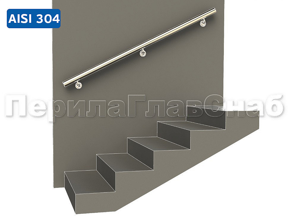 Готовый пристенный поручень с 4 держателями, длина 3300 мм (AISI 304) k730-33 купить в Челябинске
