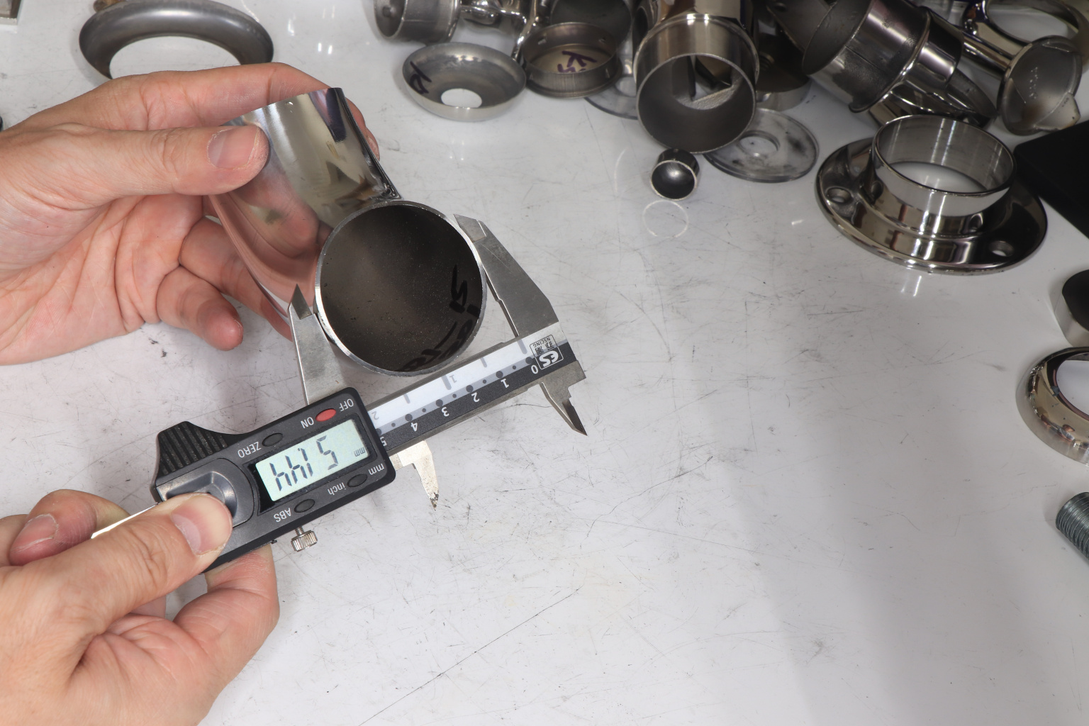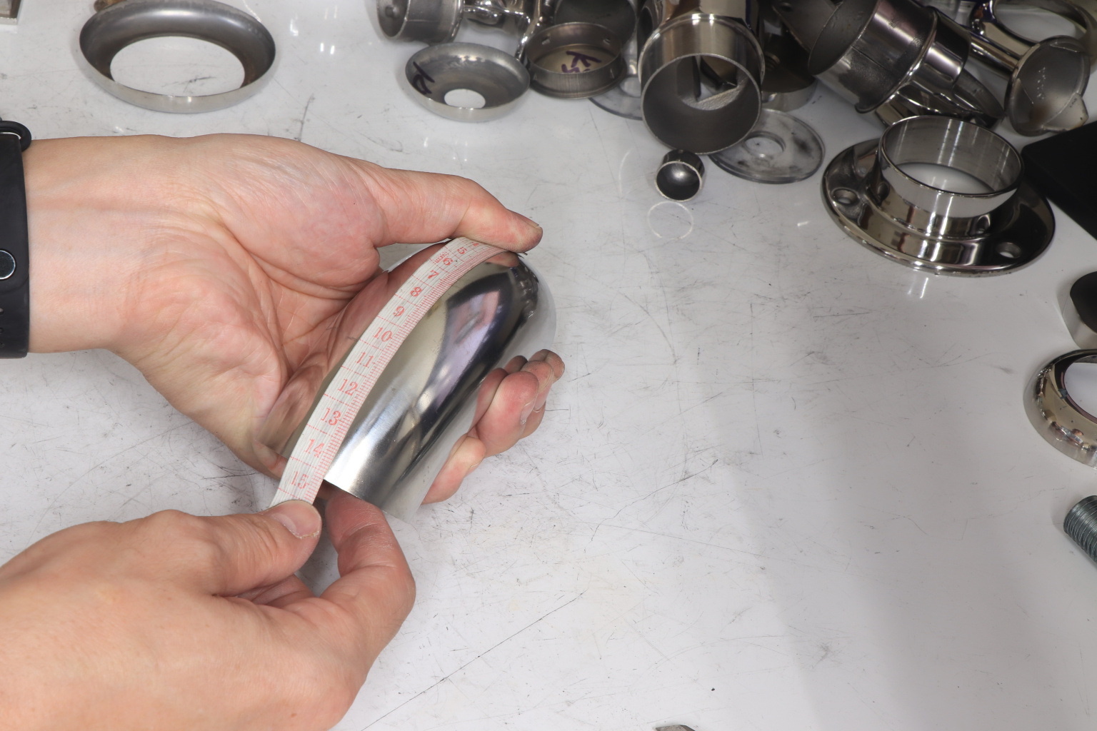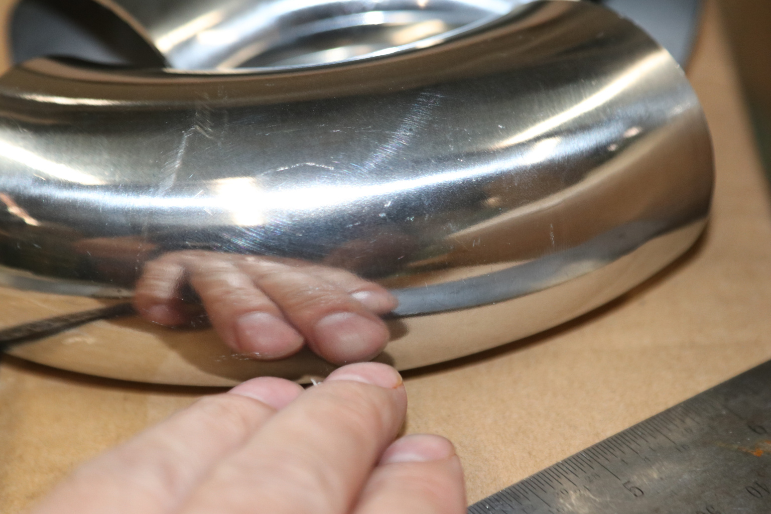 3. Вывести в ровную, гладкую поверхность место стыковки поручня с отводом.