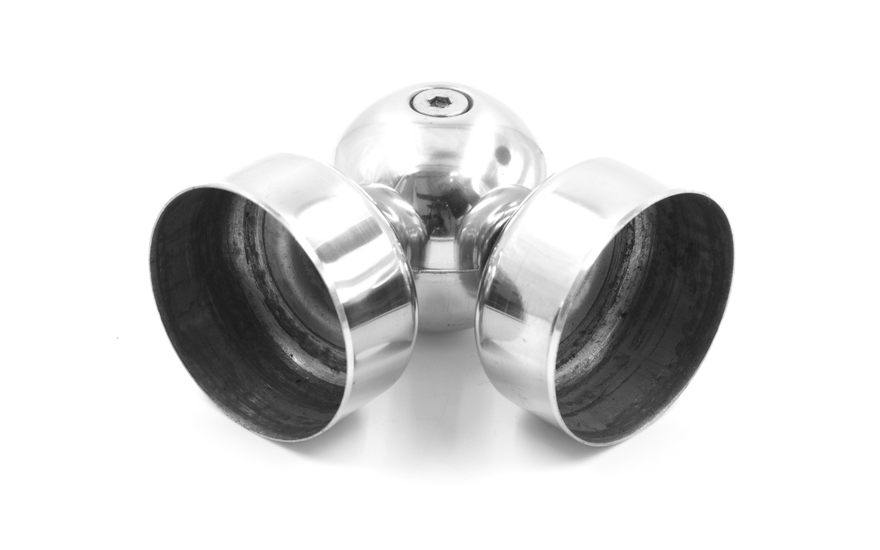 Поворот для деревянного или пластикового поручня диаметром 50.8х0,8 мм, усиленный. Деталь полированная, штампованная. Марка стали - AISI 201