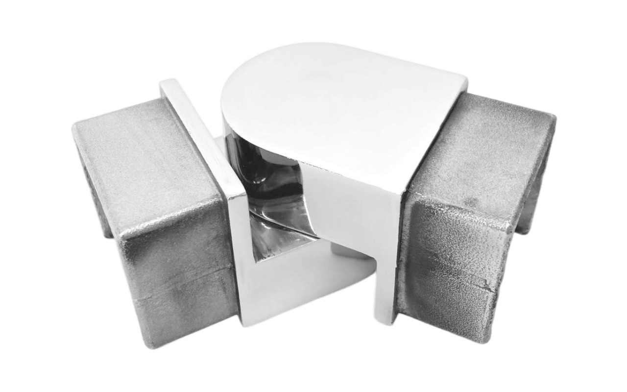 Отвод для поручня с пазом 40х40 мм, шарнирный, полированный. Марка стали - AISI 304