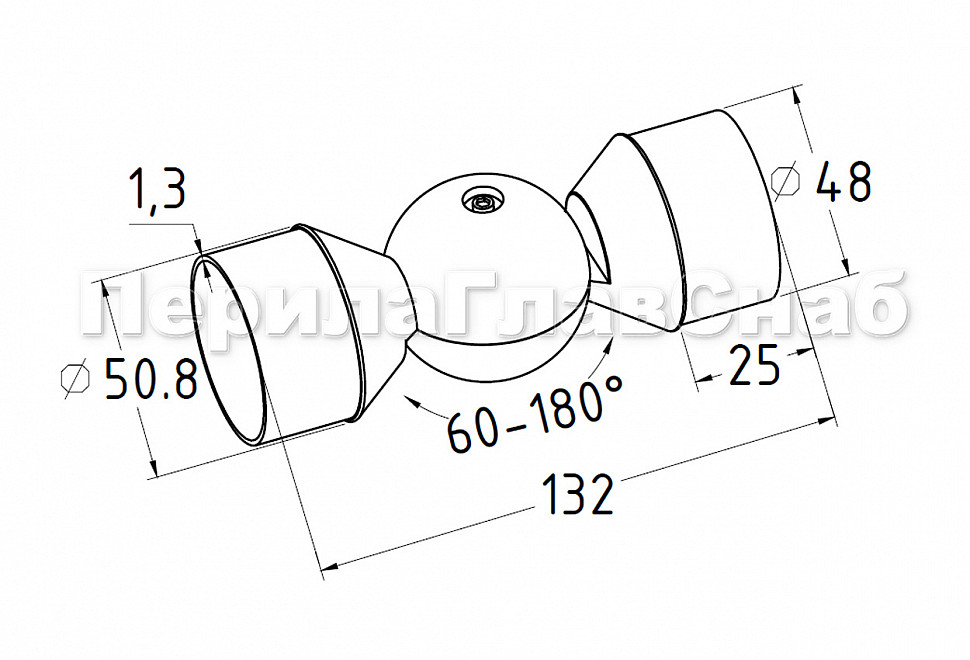 Поворот литой, регулируемый, "шар" с установочными кольцами, под Ø50.8 мм, (AISI 304) k558
