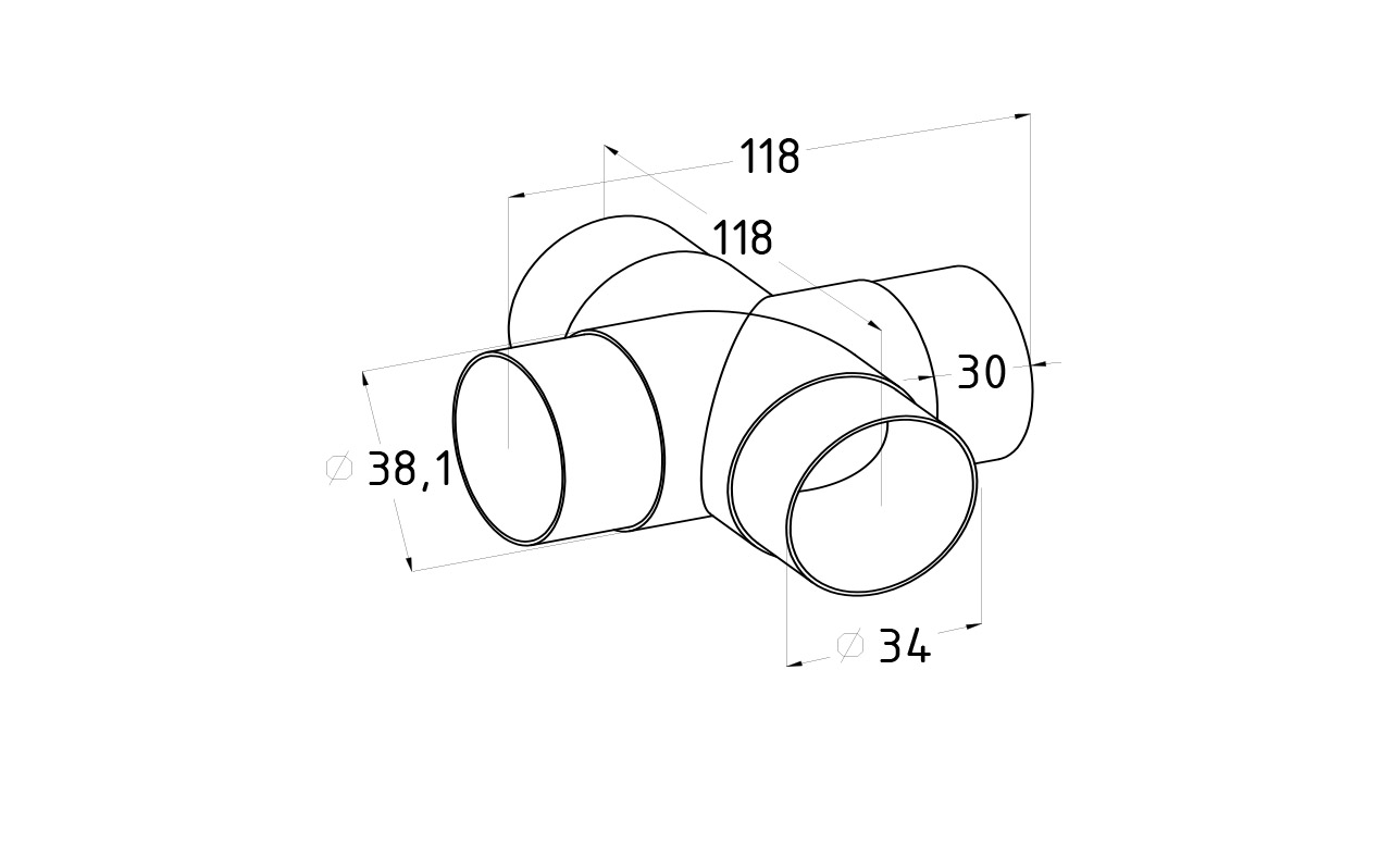 Соединение поручня Ø38.1 мм, крестовина (AISI 304)