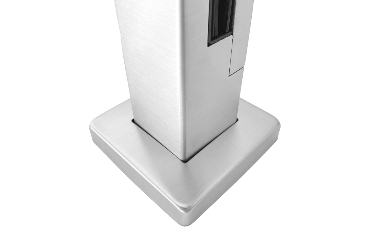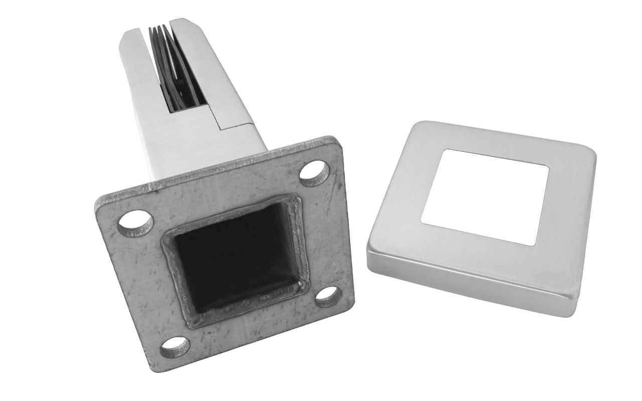 Эксклюзивная деталь, представленная только у нас!  Очень красивый и в тоже время мощный напольный КВАДРАТНЫЙ стеклодержатель предназначен для создания ограждений со стеклом 10-12 мм у бассейнов и кровли. Особый интерес эта модель вызывает благодаря возможности создания ограждений без использования стоек, так как корпус нержавеющей детали монтируется прямо в пол. Аналог данной позиции, но только под отверстие в стекле k275-2 и k276-3.