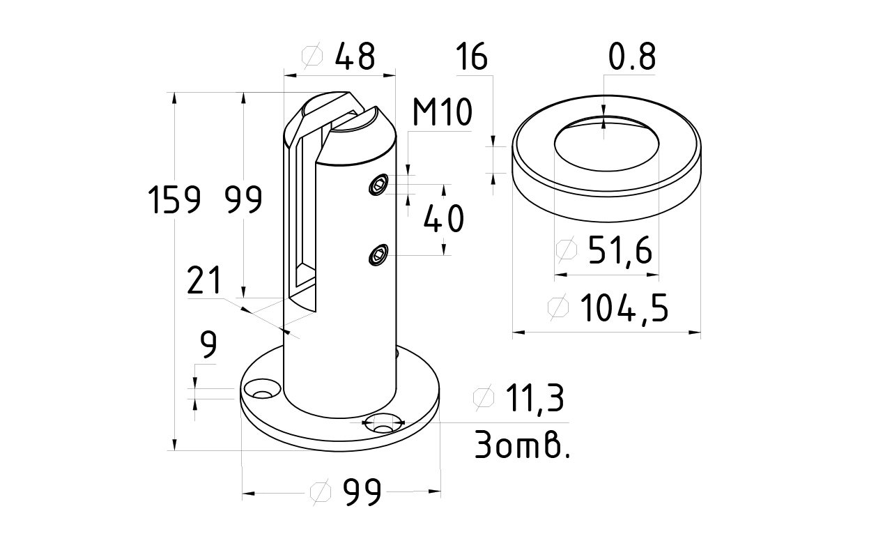 Стеклодержатель литой напольный, круглый Ø50.8х160 мм, шлифованный (aisi 304) Фk276-2