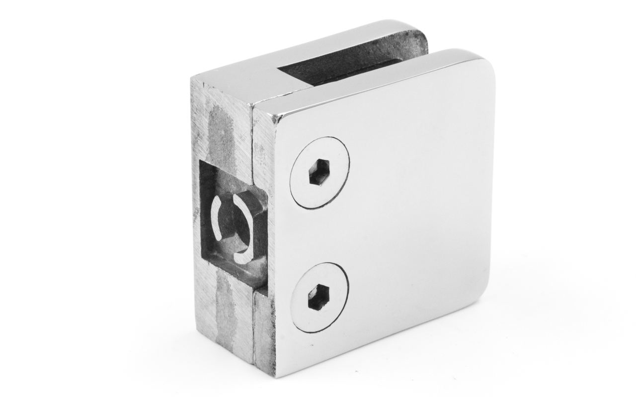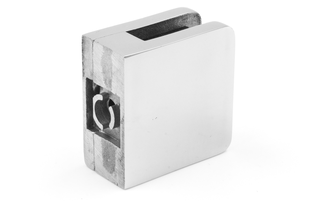 Cтеклодержатель литой, под стекло 8 мм, на плоскость 42х22,5х42 полированный. Марка стали - AISI 304