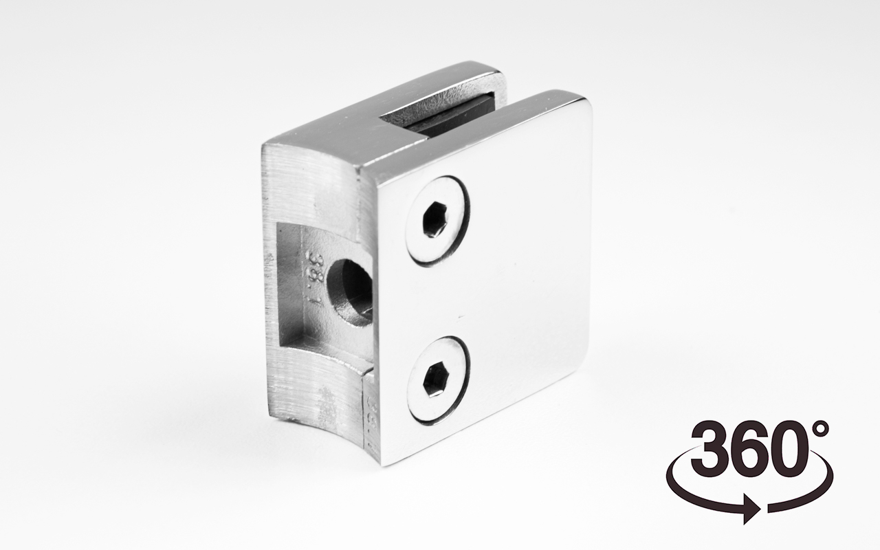Стеклодержатель литой под стекло 8 мм (4+4 мм), под стойку Ø38.1 мм 40х22х49, полированный (AISI 304) k001-4