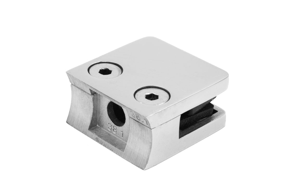 Стеклодержатель штампованный под стекло 8 мм (4+4 мм), под стойку Ø38.1 мм 40х24х55, полированный (AISI 304) k038 купить в Челябинске