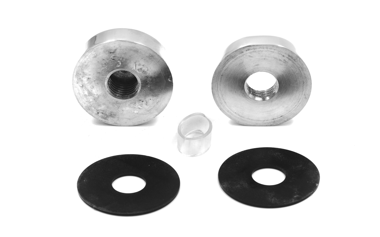 Точечный стеклодержатель для торцевого крепления несущего стекла в широчайшем диапазоне от 8 (4+4) мм до 40 (20+20) мм. Диаметр наружной (хрюшка) и внутренней шайб по 50 мм. Для затягивания гайки рекомендуем использовать ключ k367-2.