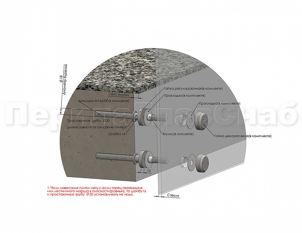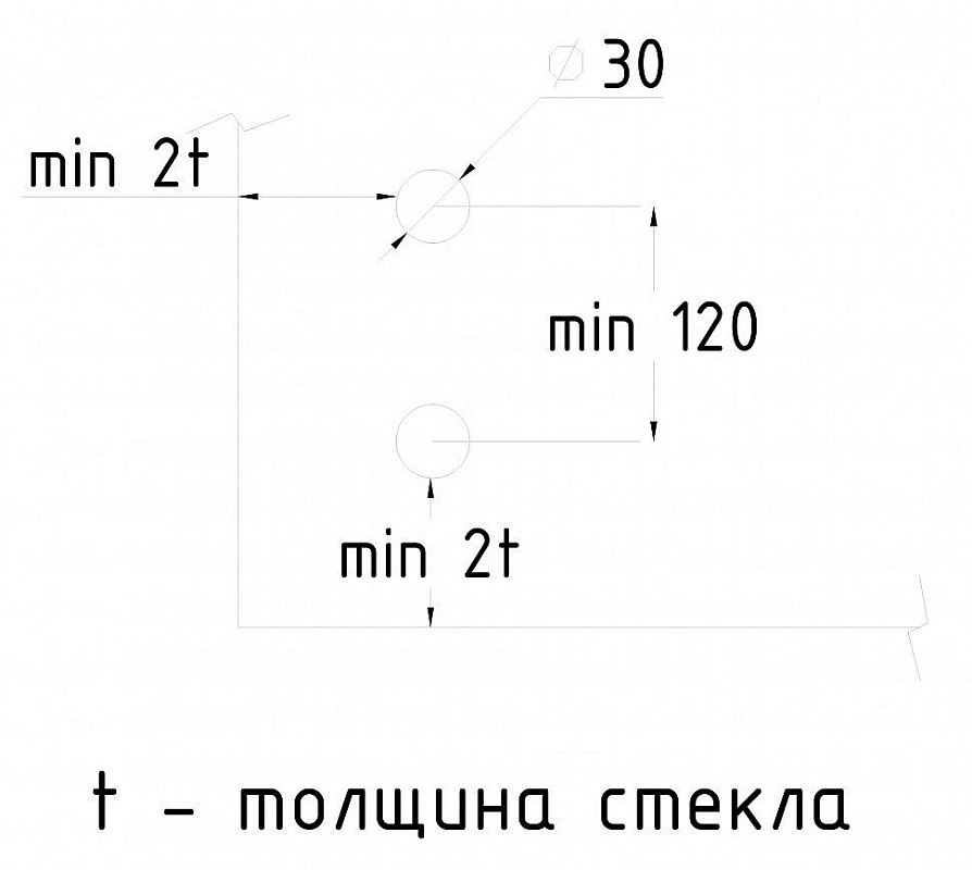 отверстие в стекле 19-20 мм под шпильку М16 (артикул М-3954)