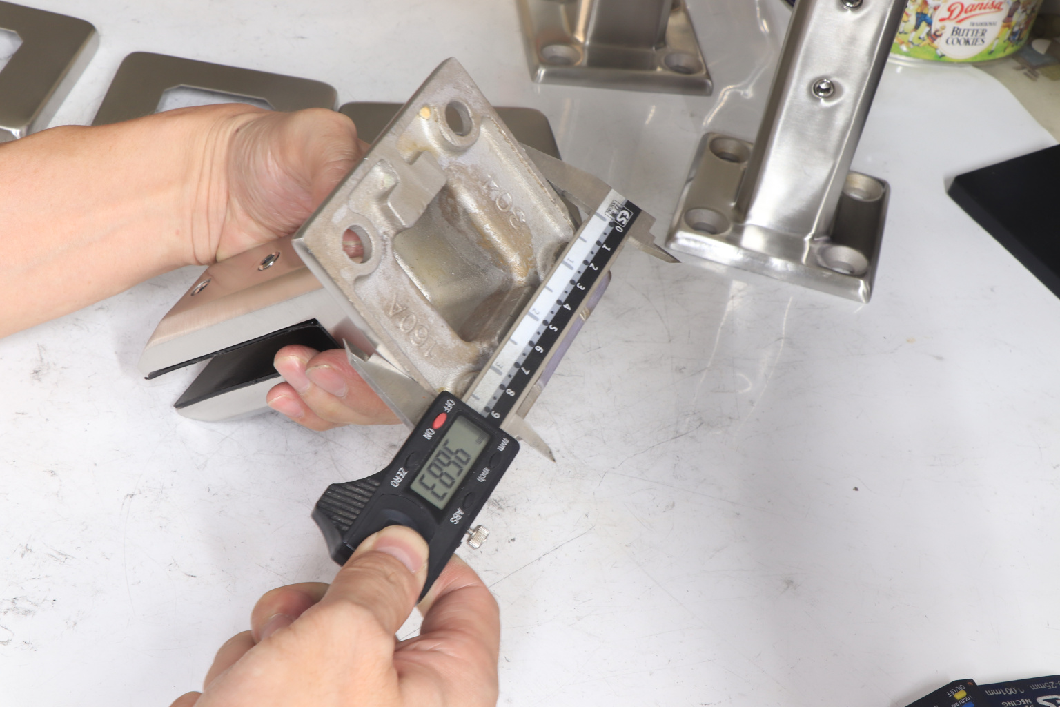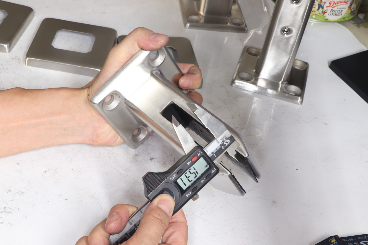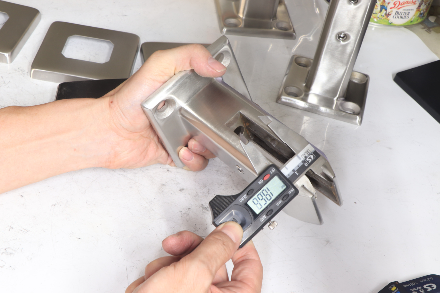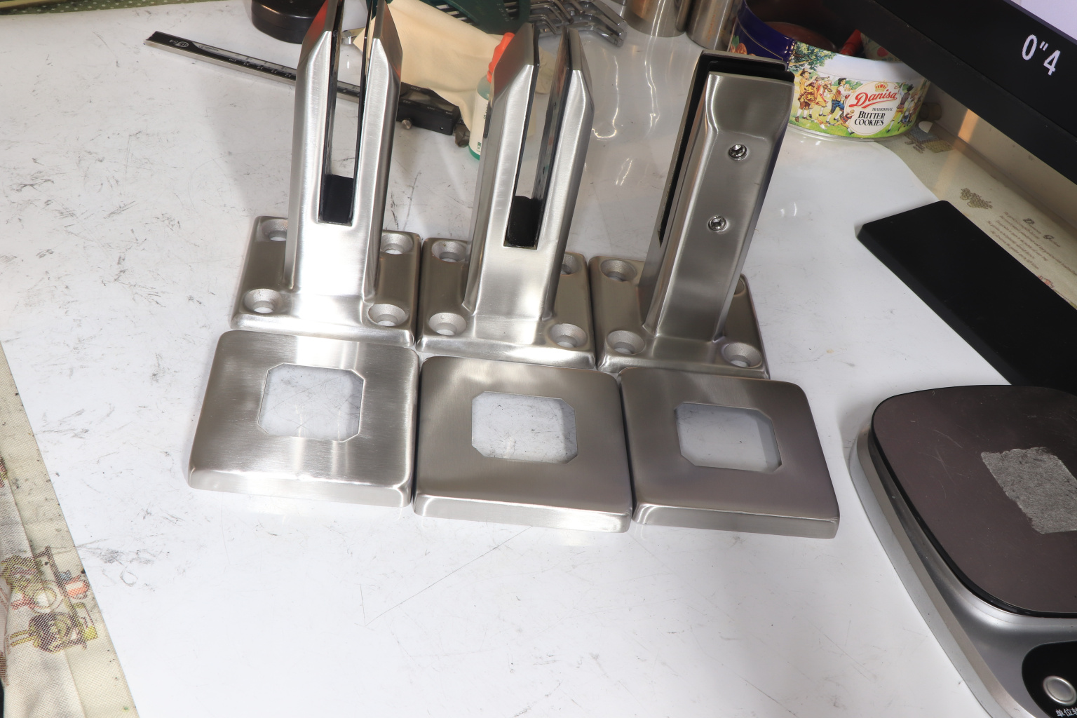Стеклодержатель напольный 45х50х160 мм, литой, плоский, для стекла 10-12 мм, без сверления, нержавеющая сталь AISI 304, шлифованная. Так же вам понадобиться для крепежа потайной винт под шестигранник k601-19-120.