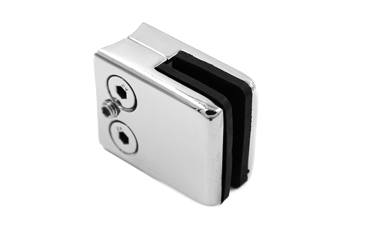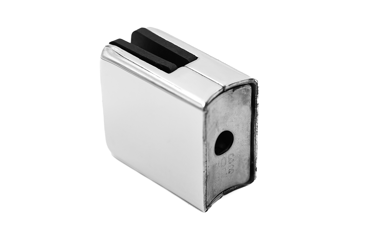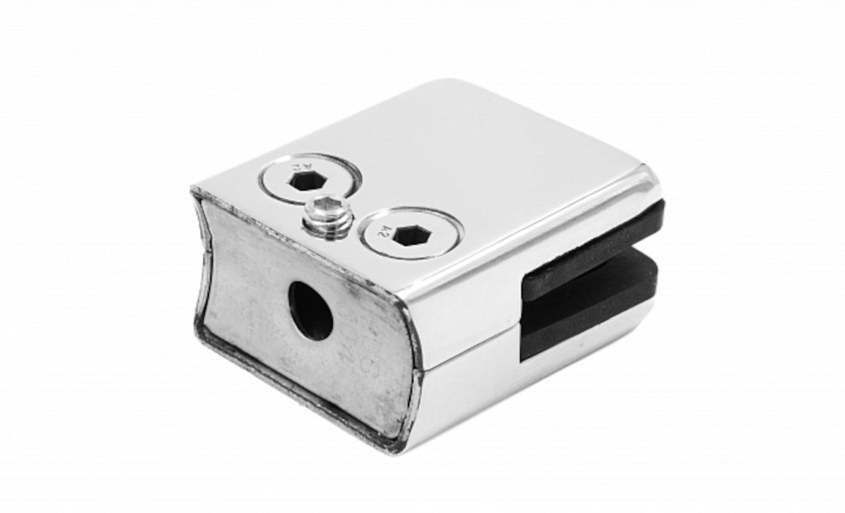 Стеклодержатель штампованный под стекло 8 мм (4+4 мм), под стойку Ø38.1 мм 40х24х55, полированный (AISI 304) k038 купить в Челябинске