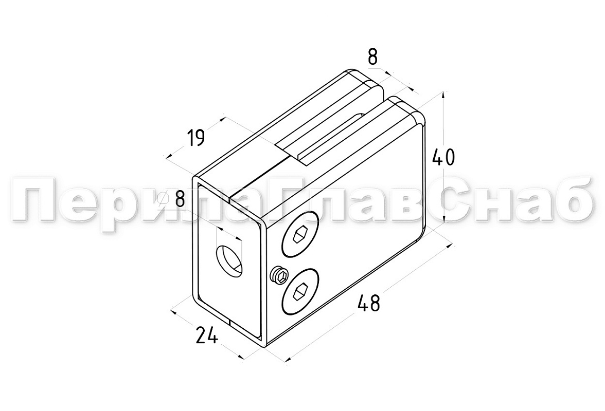Стеклодержатель штампованный, под стекло 8 мм (4+4 мм), на плоскость 40х24х48 полированный (AISI 304) k352