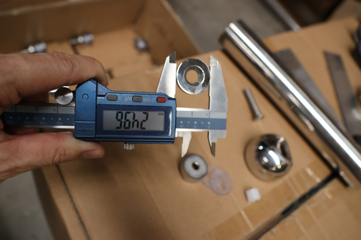 Стеклодержатель Ø50х10х18, шпилька М16х205 мм, для стекла 8-40 мм, AISI (201), с возможностью регулировки выноса до 65 мм, для торцевого крепления стекла, полированный, литой k277-3 купить в Челябинске