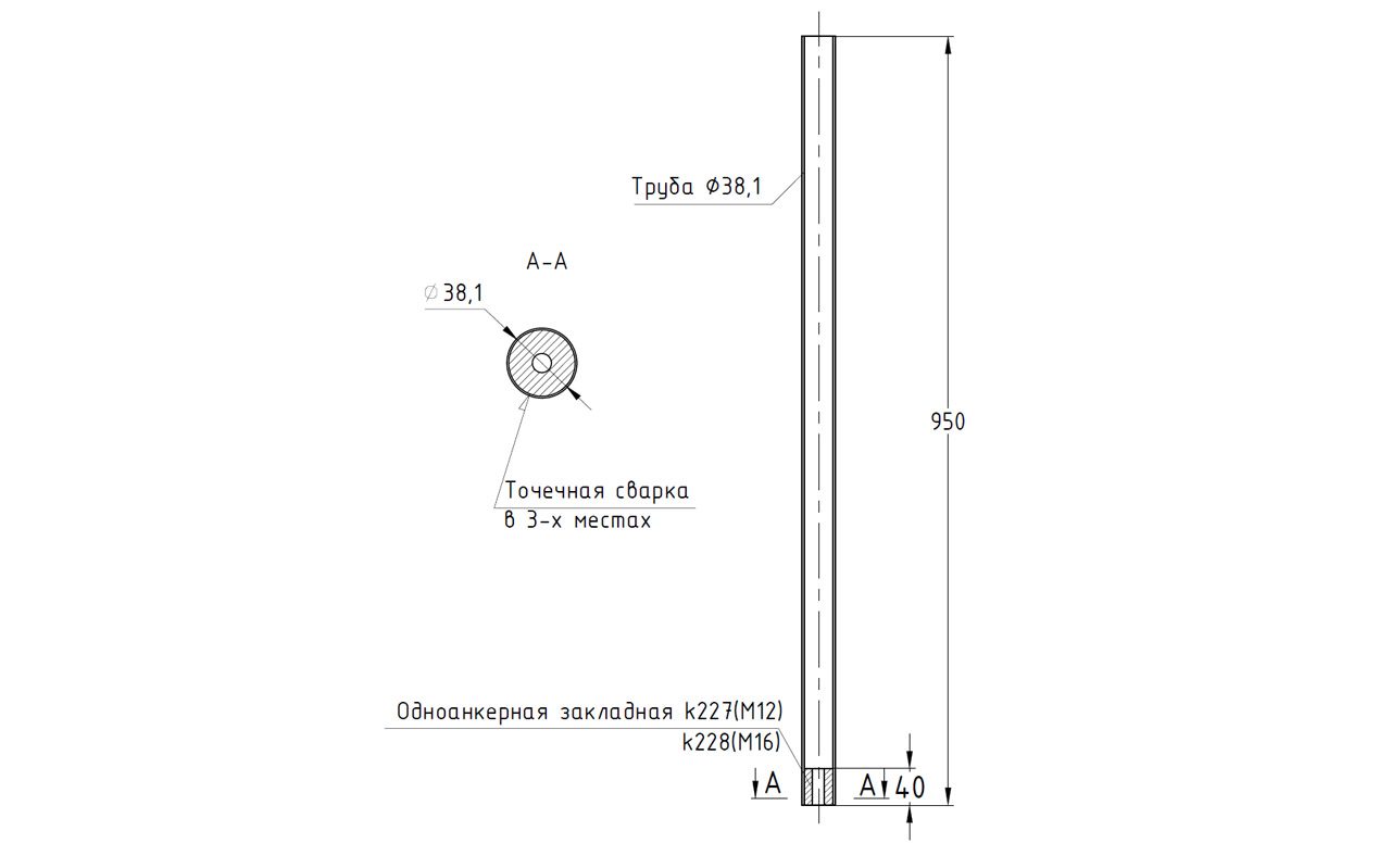 - низ стойки k015, k007, k035, k043, k201, одноанкерная закладная к227; к228, шпильки м12 ( м-3108,м-3968), м16 (м-3954, м-3962)