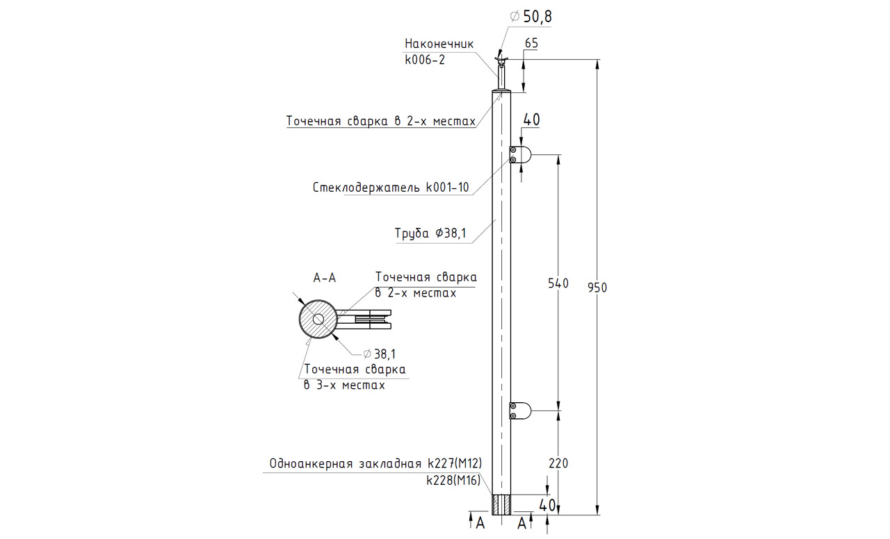 Стойка изготовлена на нашем производстве и готова к установке сразу после покупки. Используемая при изготовлении 304 марка стали позволяет применять данную стойку как внутри здания, так и на улице. Все элементы стойки приварены аргонной сваркой. Стеклодержатели под стекло 8мм ( С-8003, С-8023, С-8006, С-8047, С-8049). Наконечник под трубу ф38-50. Сварные швы на балясине убраны и идеально заполированы, а балясина ничем не уступает ограждениям сделанным профессиональными бригадами. Любой человек сможет сделать монтаж имея только отвертку, клей ( ф-1127, ф-1105), саморезы( М-3850, М-3847, М-3215), шестигранник ( k931, k932). Благодаря литым стеклодержателям стойка смотрится дорого и придает уверенности в надежности конструкции. Стойка используется как конечная правая. Для окончания ограждения используйте левую k736-L, а проходная стойка k738. Балясины со стеклом ставят в торговых и развлекательных центрах, в коттеджах, на балконах и верандах ресторанов. Удобство данной стойки, в том, что не нужно ловить отверстия в стекле, что бы закрепить стекло в стеклоджержателе. Вам достаточно замерить расстояние между стенками стеклодержателей и высоту стекла, что бы изготовить стекло и установить его.