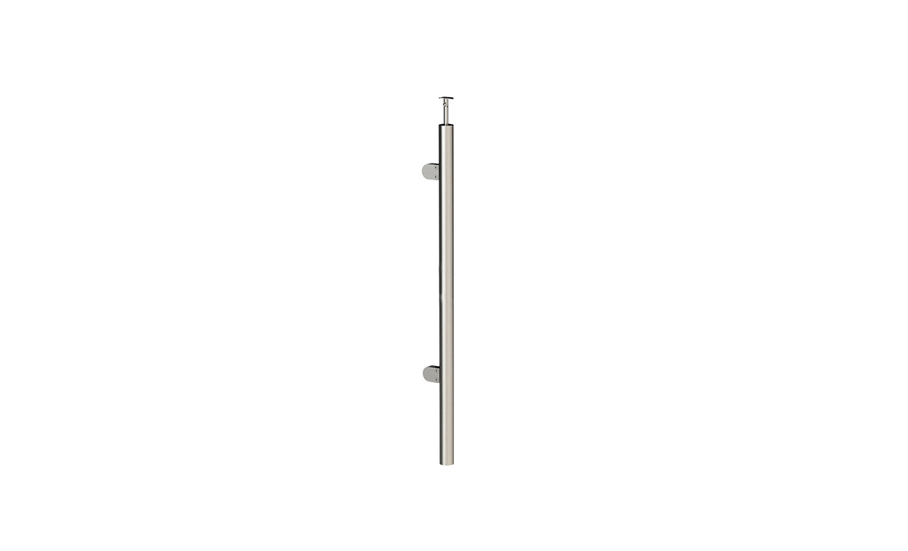 Стойка круглая Ø38.1: 2 литых зажимных стеклодержателя, полированная, с одноанкерым крепежом, высота 950 мм (AISI 304) k736-R