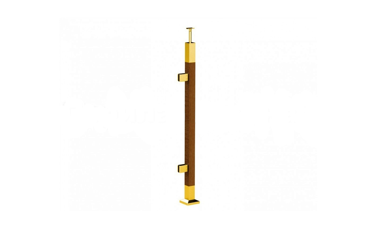 Готовая стойка 40х40х950 мм, деревянная, со вставками из нержавеющей стали 2х100 мм с 2 зажимными стеклодержателями, под золото k740-4-R-G купить в Челябинске