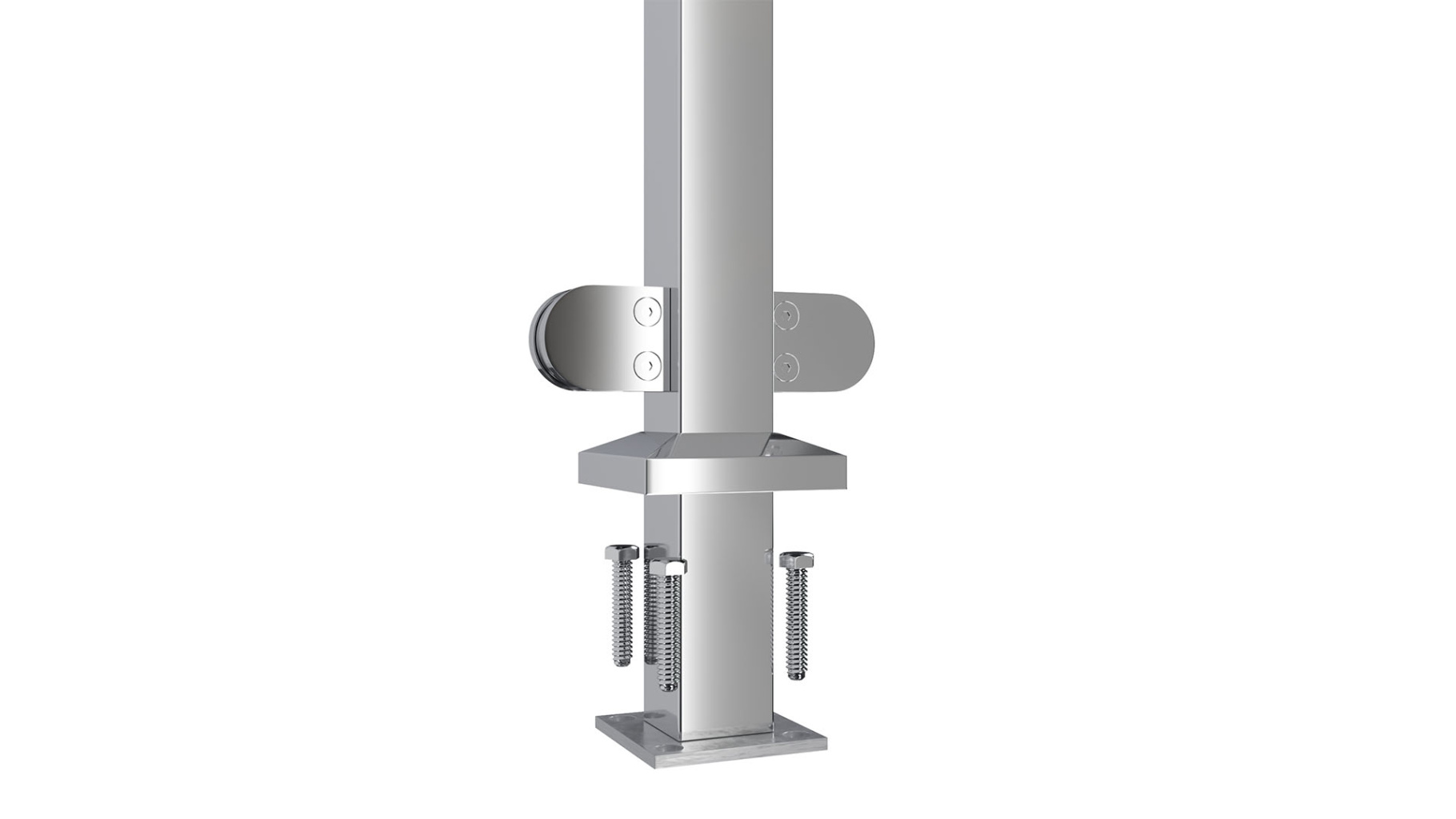 Стойка квадратная 40х40: 4 литых стеклодержателя, шлифованная, высота 950 мм, марка стали- AISI 304
