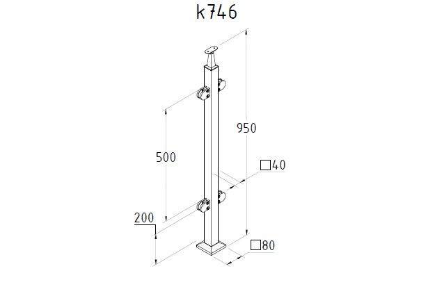 Стойка квадратная 40х40: 4 литых стеклодержателя, шлифованная, высота 950 мм AISI 304 k746-7