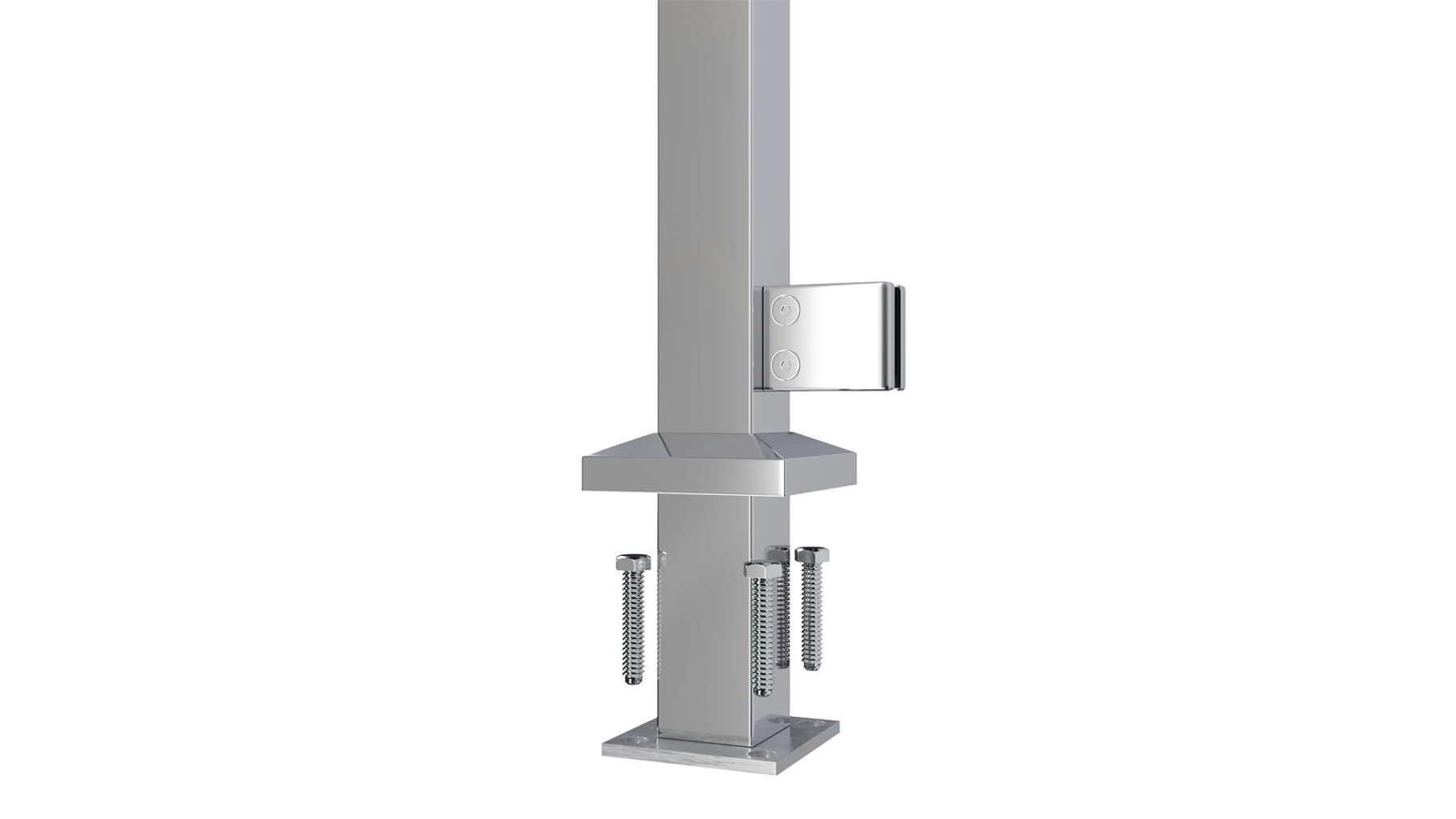 Стойка квадратная 40х40: 2 литых квадратных стеклодержателя, шлифованная, высота 950 мм (AISI 304)