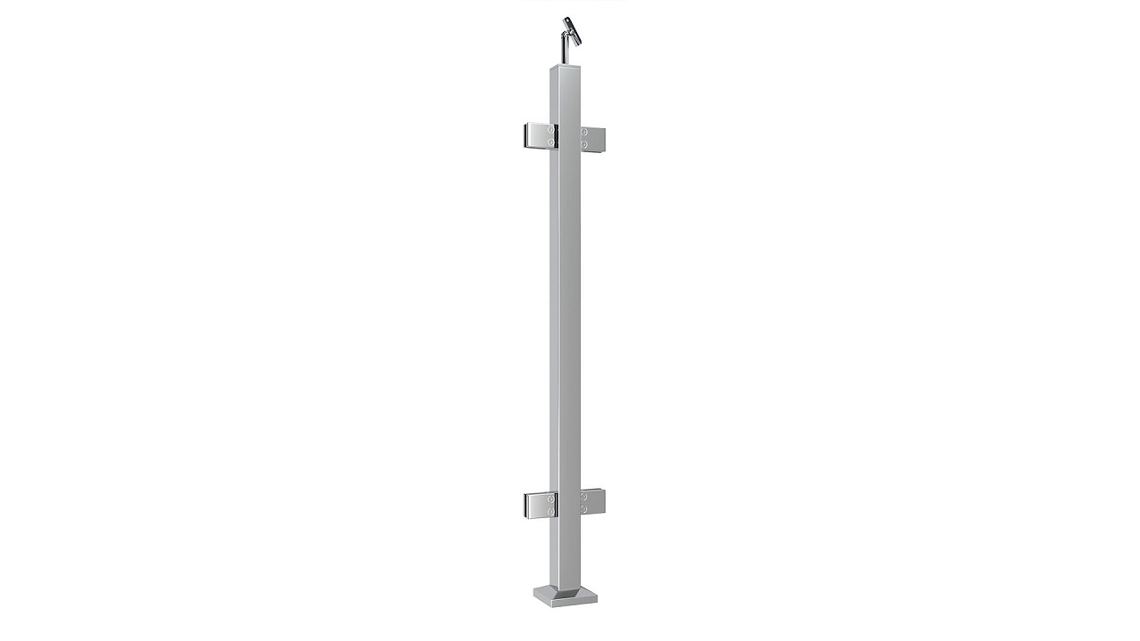 Cтойка квадратная 40х40: 4 литых квадратных стеклодержателя, полированная, высота 950 мм (aisi 304)
