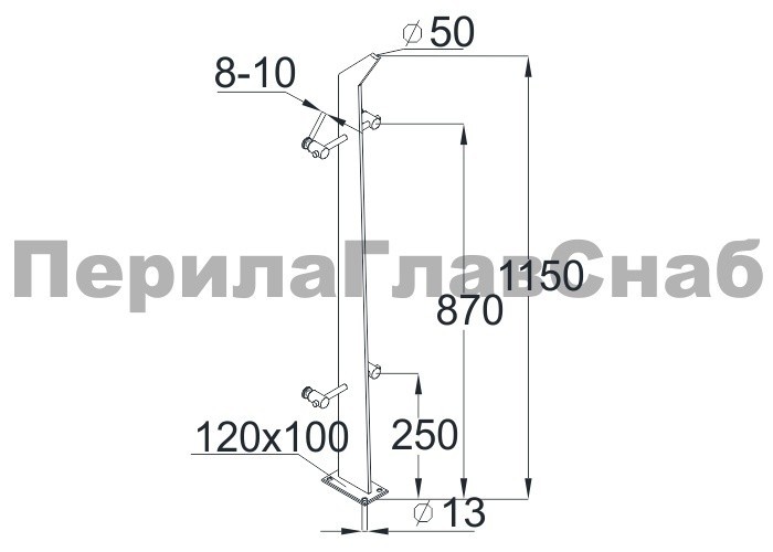Стойка круглая Ø38.1: 2 литых зажимных стеклодержателя, под стекло 8-10 мм, полированная, высота 950 мм (AISI 304) k722-L купить в Челябинске