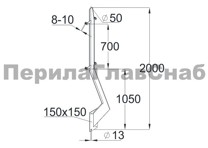 Стойка эксклюзивная с двумя пластинчатыми стеклодержателями, крепление в торец, без ложемента (aisi 304)