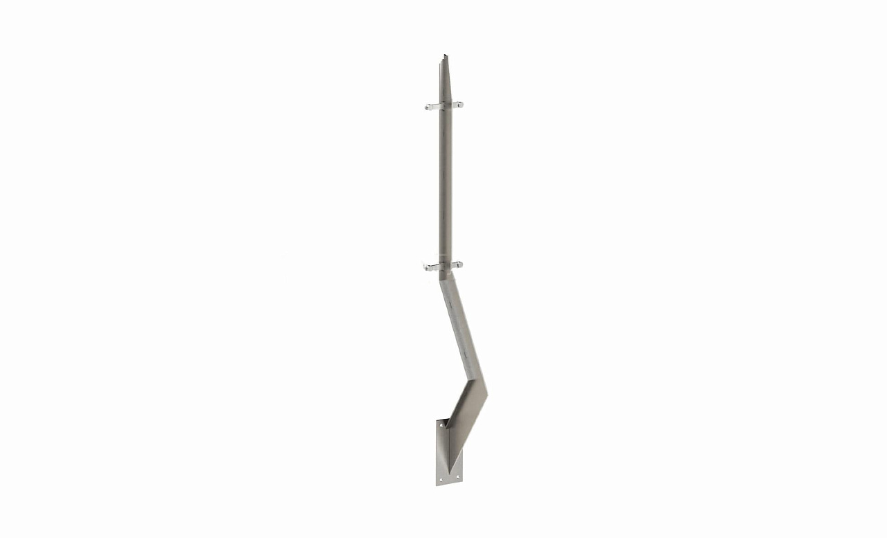 Стойка эксклюзивная с двумя пластинчатыми стеклодержателями, крепление в торец, без ложемента (AISI 304) k786
