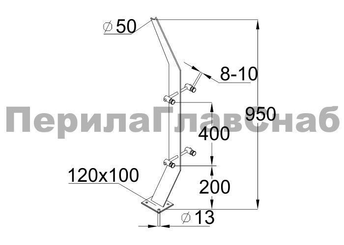 Стойка эксклюзивная с двумя спайдерными стеклодержателями, крепление в пол, нерегулируемый ложемент (aisi 304)