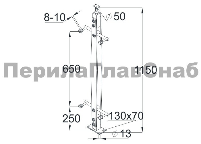 Стойка эксклюзивная из двух пластин с двумя спайдерными стеклодержателями, крепление в пол, регулируемый ложемент (aisi 304)