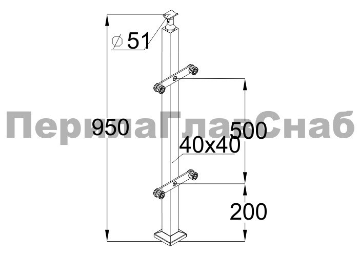 Стойка квадратная 40х40: 4 литых стеклодержателя, полированная, высота 950 мм (AISI 304) k746 купить в Челябинске