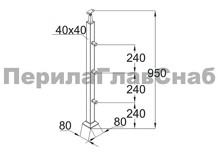 Cтойка квадратная 40х40: 3 ригеледержателя, полированная, высота 950 мм (aisi 304)