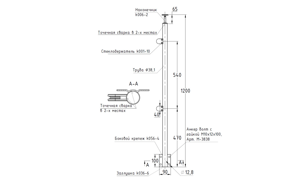 Готовые стойки – это экономия вашего времени и денег. Приобретая готовую стойку Вы можете собрать ограждение сами, не привлекая монтажную бригаду и экономя денежные средства на монтаже. Стойка легко монтируется к торцу. Отверстия под анкер-болт ( М-3129, М-3843, М-3838) либо при помощи шпильки М10 ( М-3963, М-3727, М-3964). Стекло ( С-8003, С-8023, С-8006, С-8047, С-8049) крепится в стеклодержателе за счет отсоединяющейся одной половины стеклодержателя при помощи шестигранника ( k931, k932). Поручень из нержавеющей стали так же легко закрепить при помощи сверла по нержавеющей стали ( k961-03, k961-03.5, k961р-03.5, k961р-03) и самореза ( М-3850, М-3847, М-3215). Либо при помощи заклепки ( М-3214) и винта М6 ( М-3973), для крепления при помощи заклепок необходимо растачивать отверстие в ложементе. Если вы используете пластиковый или деревянный поручень, то его можно закрепить при помощи саморезов ( М-3217)