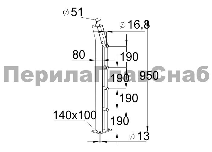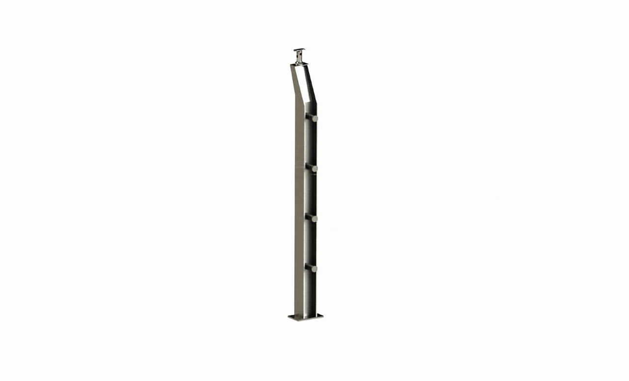 Стойка квадратная 40х40: 4 литых стеклодержателя, полированная, высота 950 мм (AISI 304) k746 купить в Челябинске
