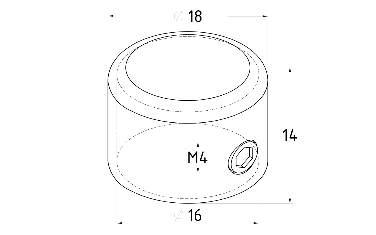 Заглушка сферическая Ø16 х 1.00 мм, сварная, (AISI 201) k054