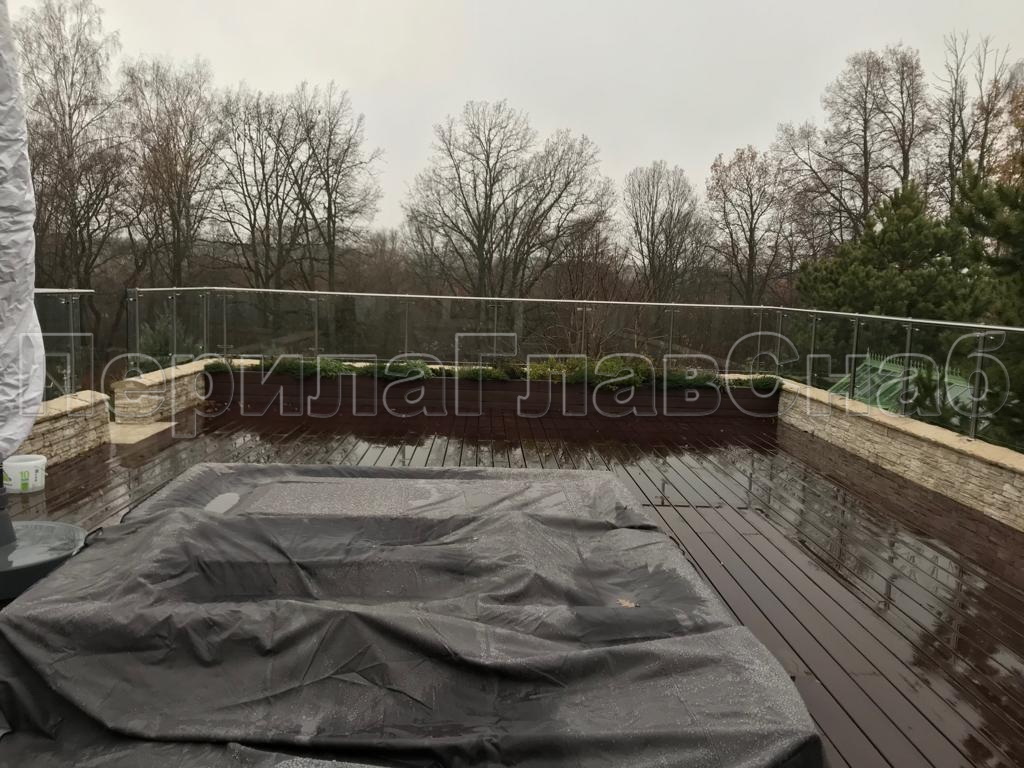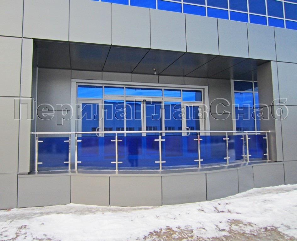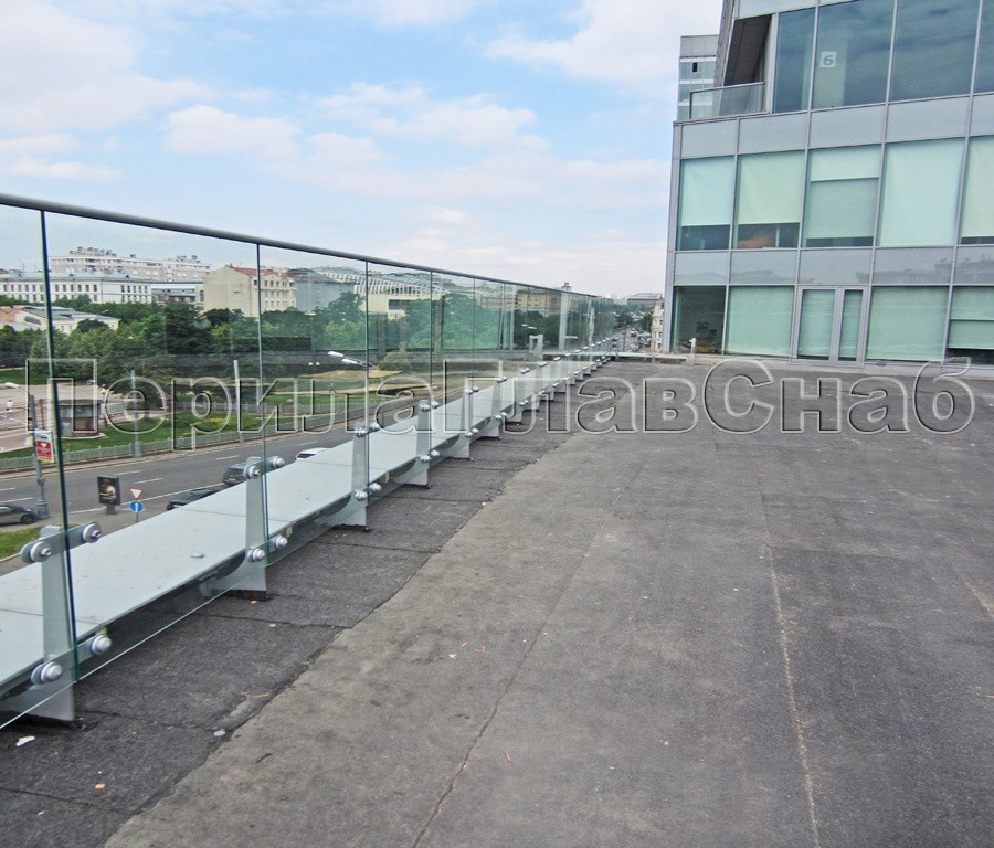 Ветрозащитное ограждение без стоек, на точечном креплении в торец