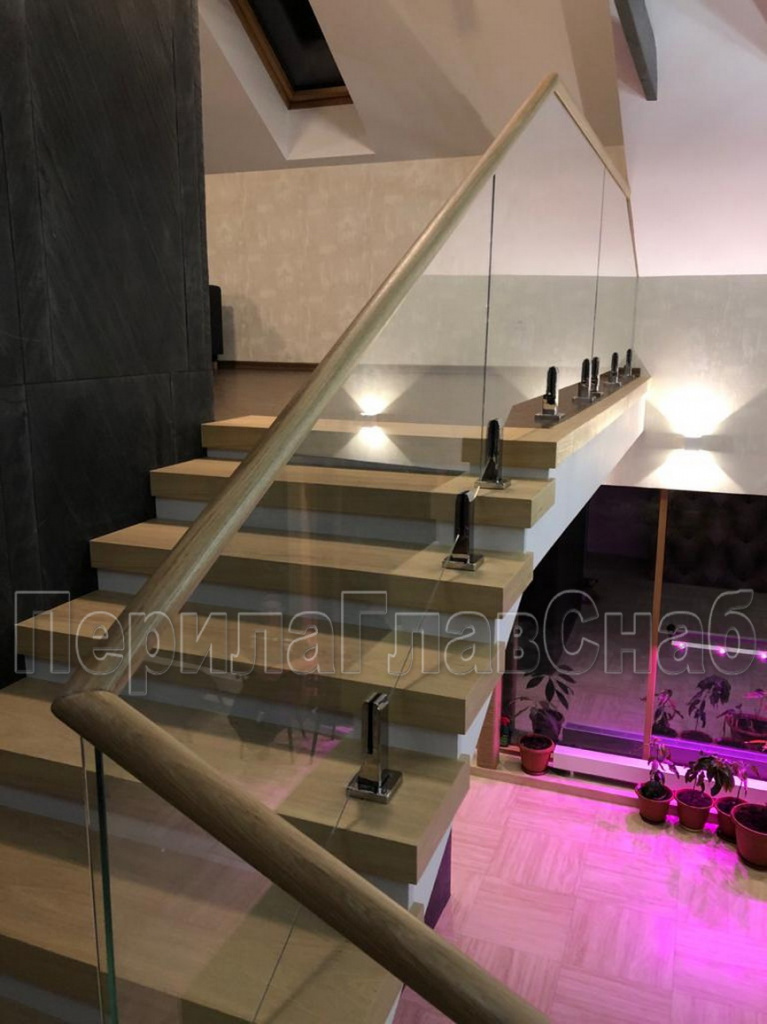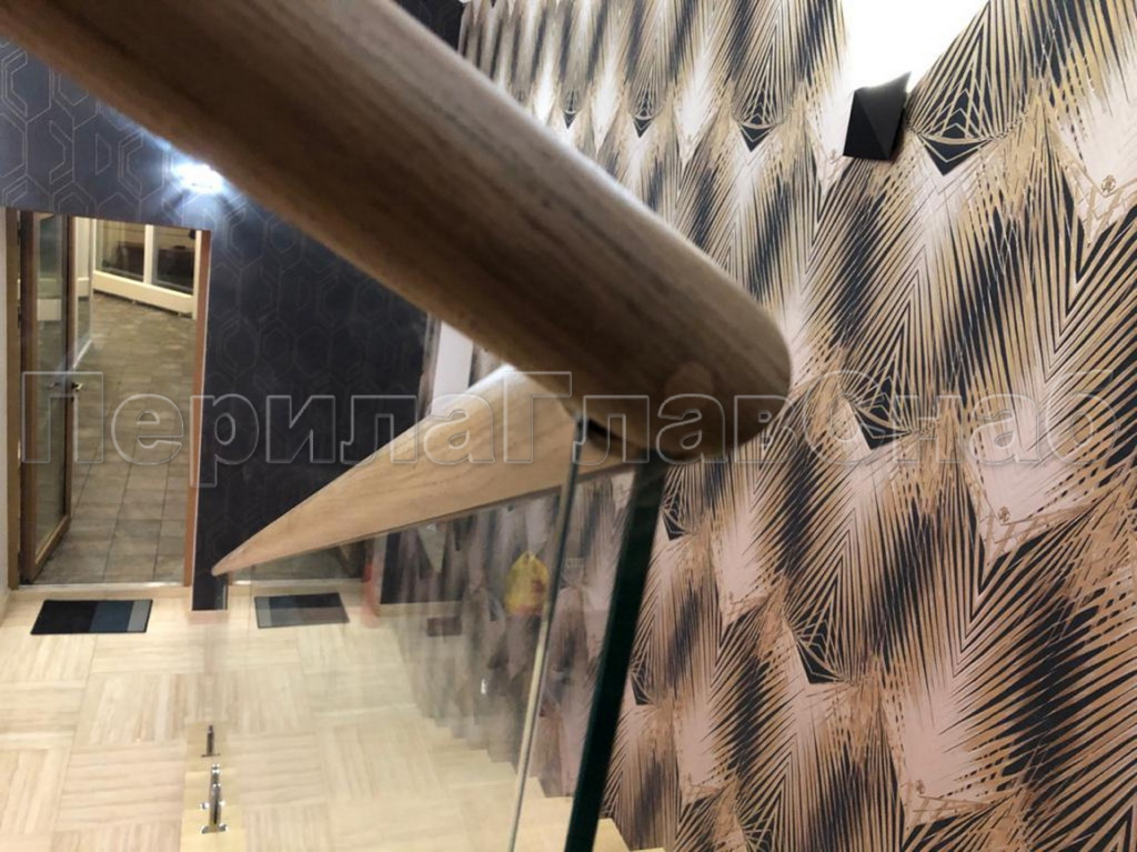 Конструктив:  дубовые  перила на калёном  стекле  10 мм, с  министойками
