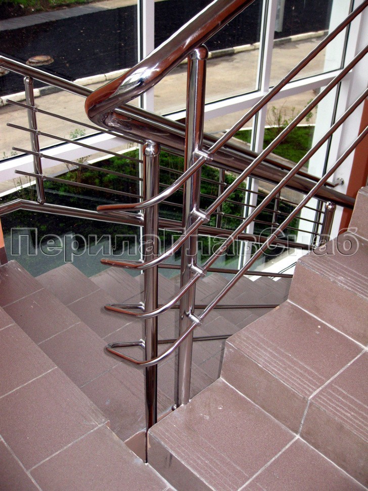 Крепление стоек было торцевое, так как по просьбе заказчика необходимо было максимально увеличить полезную ширину марша, согласно строгим требованиям безопасности.