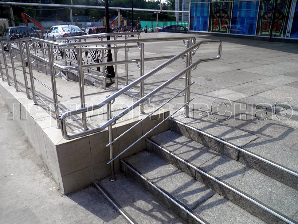 Так как кино-клуб был построен на естественном возвышении, необходимо было возвести и установить промежуточные лестницы буквально в пять-шесть ступеней с ограждениями из нержавеющей стали.
